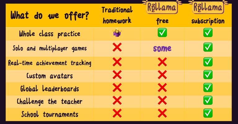 We offer a range of free tools for teachers and students, via www.rollama.com. Our full features require an account to unlock.