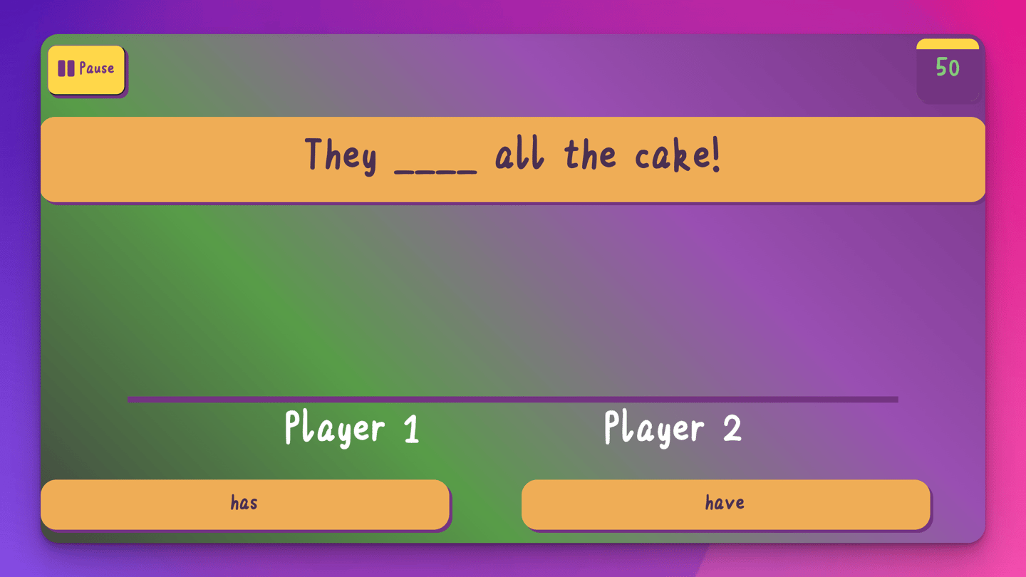 With Rollama, we've included some multiplayer game modes for 2, 3 and 4 players, so families can play together and enjoy practising English with each other.