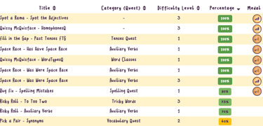 Our games cover 400+ SPAG language objectives (and counting) – aligned to the English National Curriculum for Key Stages 1 to 3 (see linked document for details).