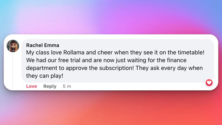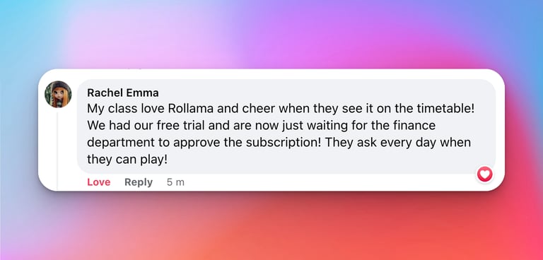 As a Head teacher, I always look for products which will have the most impact on my school community and deliver great value for the school's money. Products that teachers can easily use to track individual progress, that parents can interact with at home and, most importantly, which deliver real results for the students - Rollama does all these things.