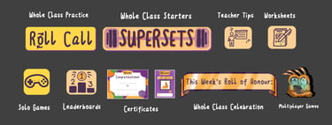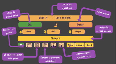 Roll Call in-class teaching tool for whole class or small groups, which is built using the same pedagogical principles as our games, to build fluency and automaticity in SPAG;